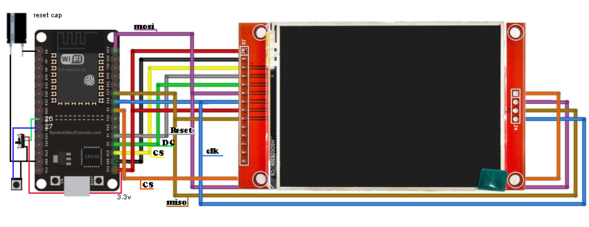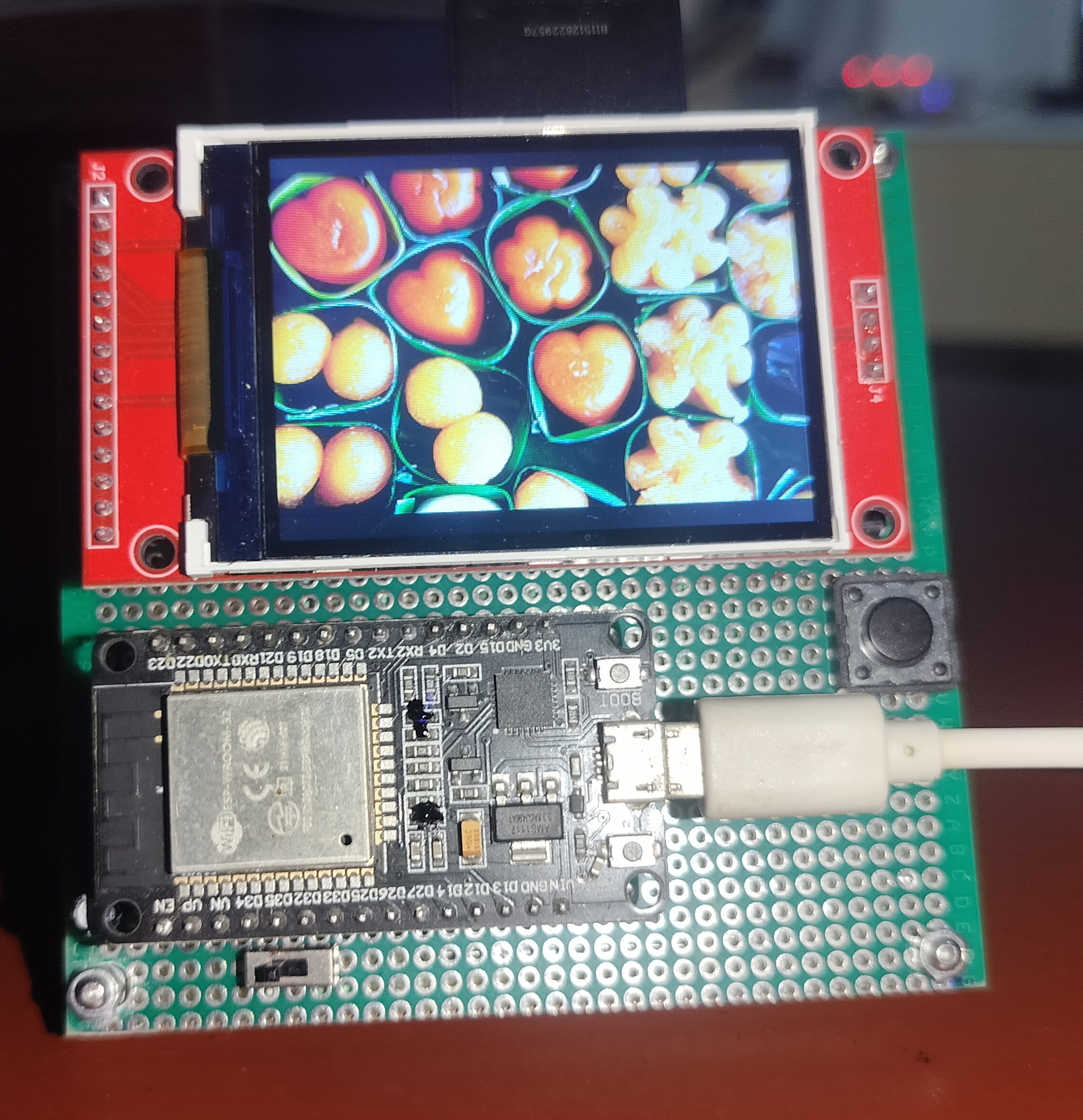 The code in this project is largly based on an example called "ESP32_SDcard_jpeg" from the library TFT_eSPI by Bodmer version 2.5.43. It will open all files on the SDcard (jpg files 320x240 pixels, saved as baseline(standard) by Photoshop). A function member called c_str() is used to return a pointer to a null-terminated character array for a C-library function.